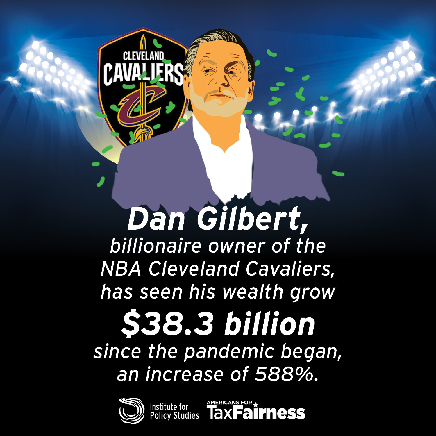 Cleveland Cavaliers owner Dan Gilbert, co-founder of Quicken Loans, has seen his wealth jump an eye-popping 588 percent since mid-March 2020. That $38.3 billion boost in his fortune is one of the biggest percentage increases of any American billionaire. The Cavaliers received a $70 million taxpayer subsidy in 2017 for arena renovations.