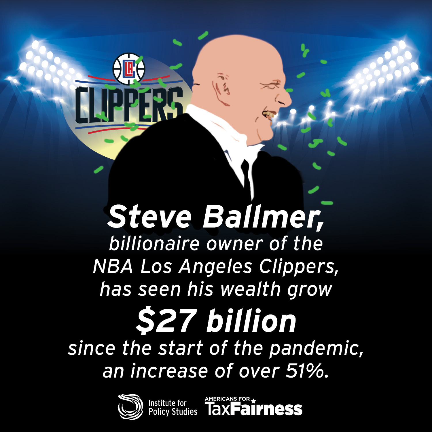 Los Angeles Clippers owner Steve Ballmer, a Microsoft pioneer, has seen his wealth increase $27 billion since mid-March 2020, a rise of over 51 percent. Over the last five years, his wealth has increased $56 billion, or 240 percent.