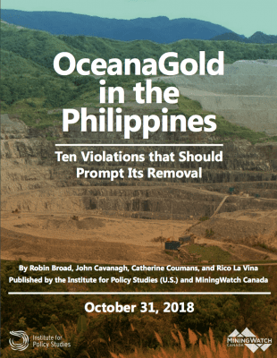 OceanaGold Corporation (OceanaGold), an Australian-Canadian company, is one of dozens of transnational mining companies in the Philippines that have been reaping profits by mining gold, silver, copper, and other minerals. Its underground Didipio Gold and Copper Mine (Didipio mine) in the Northern Luzon province of Nueva Vizcaya started open-pit commercial production in 2013. It continues to operate despite a suspension order issued on February 14, 2017 by then-Philippine Secretary of Environment and Natural Resources (DENR), Gina Lopez. The agreement that allowed OceanaGold to start mining is a 25-year Financial and Technical Assistance Agreement (FTAA). The FTAA is set to expire in June 2019, but can be renewed by the Philippine government for another 25 years.